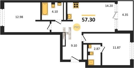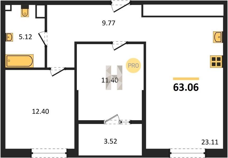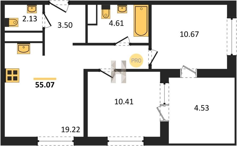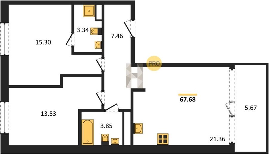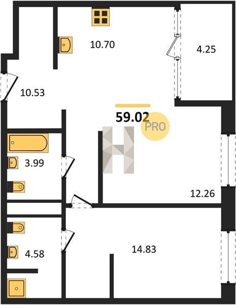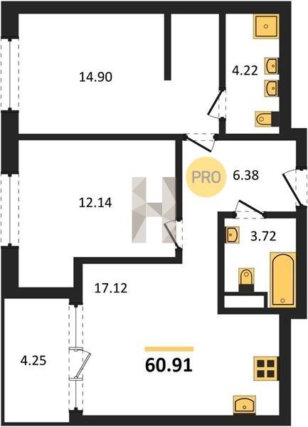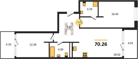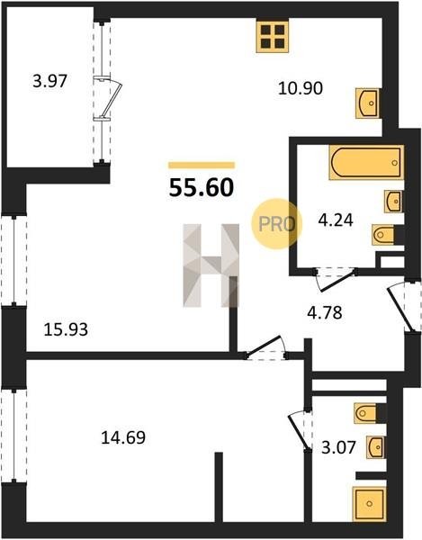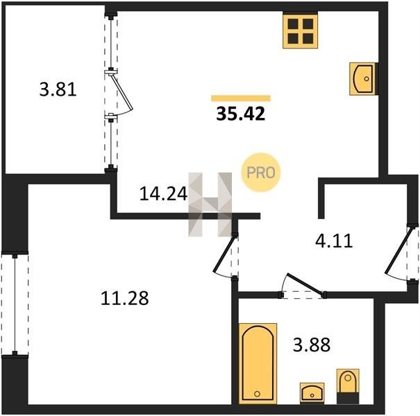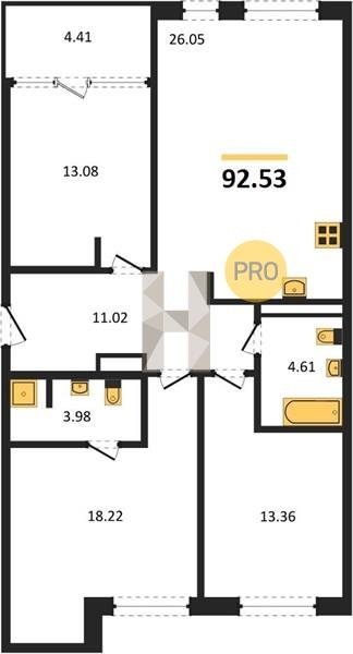 Запланированы различные планировки квартир, площадью планировок от 35,51 до 90,39 кв.м. Высота потолков от 2,7 до 3 метров, из-за чего в квартирах больше света и воздуха.